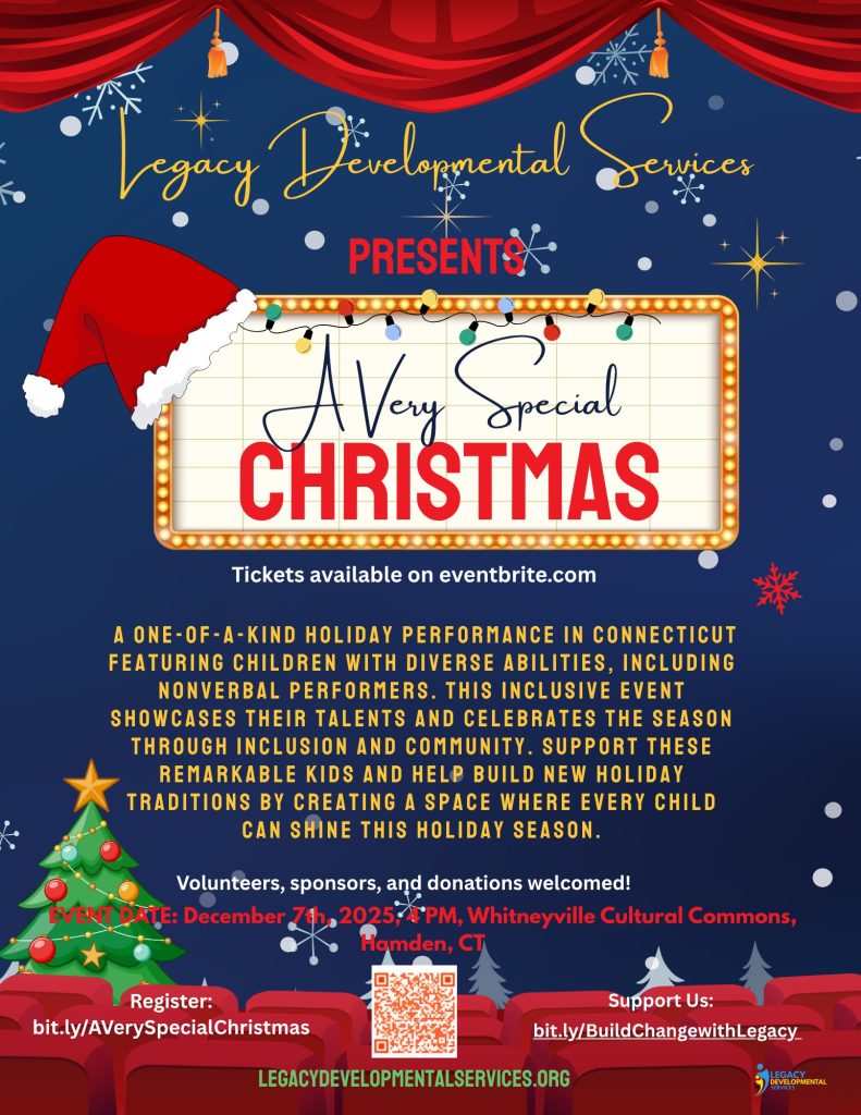 LEGACY DEVELOPMENTAL SERVICES PRESENTS: “A VERY SPECIAL CHRISTMAS” December 7, 2025 4:00 pm - December 7, 2025 7:00 pm Add to my calendar image/svg+xmlOutlook Calendar Google Calendar Yahoo! Calendar image/svg+xmlApple LogoiCal Calendar